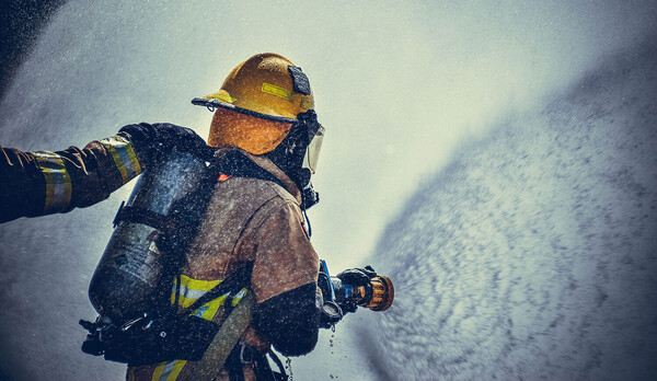 Jaune: Le pompier exécute les tâches d'intervention demandées par son supérieur: éteindre les incendies, sauver les personnes, protéger les biens et soutenir l'officier sur le terrain.